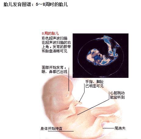胎儿长到0.4厘米,进入了胚胎期,羊膜腔扩大,原始心血管出现,可有搏动。